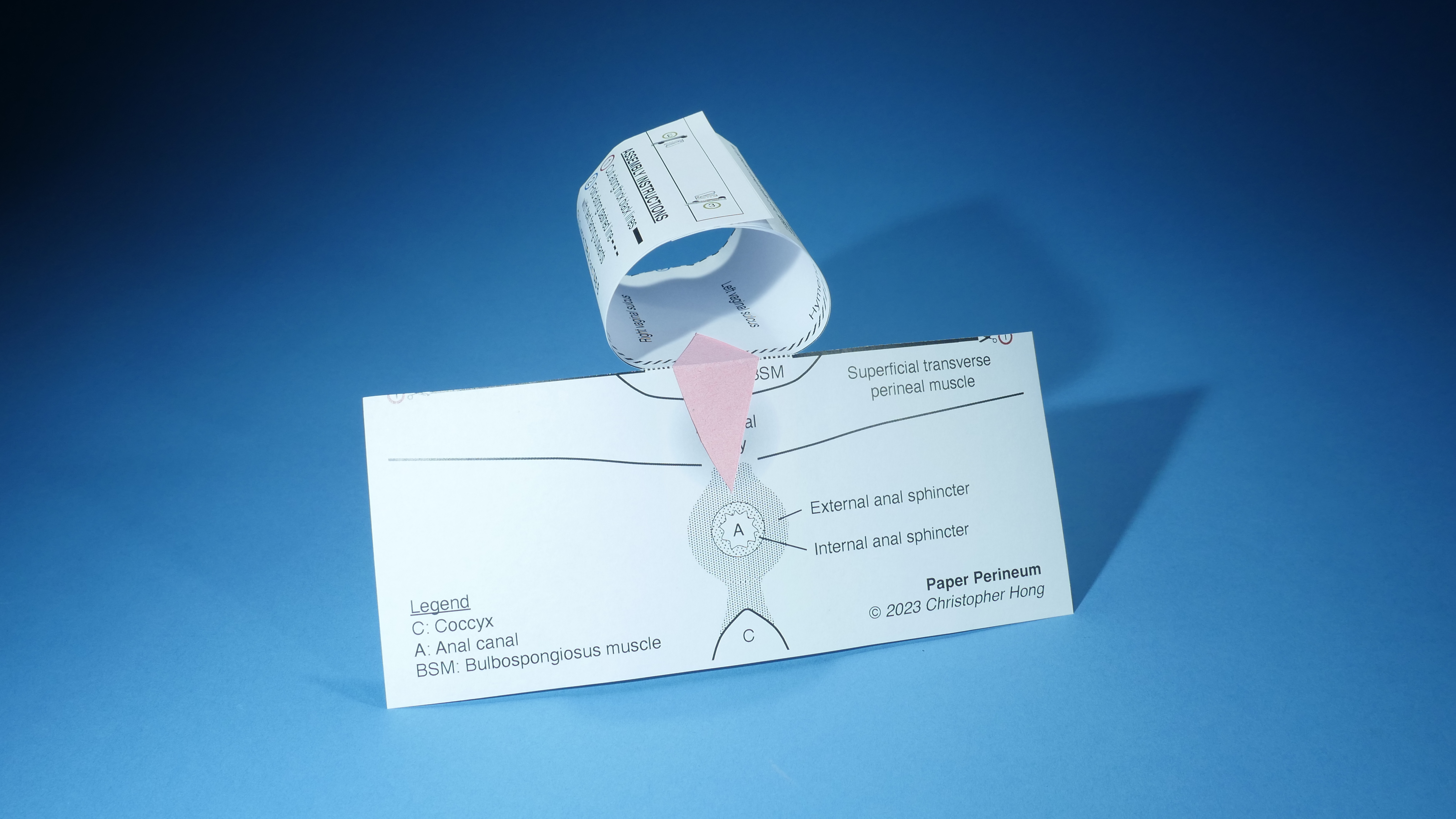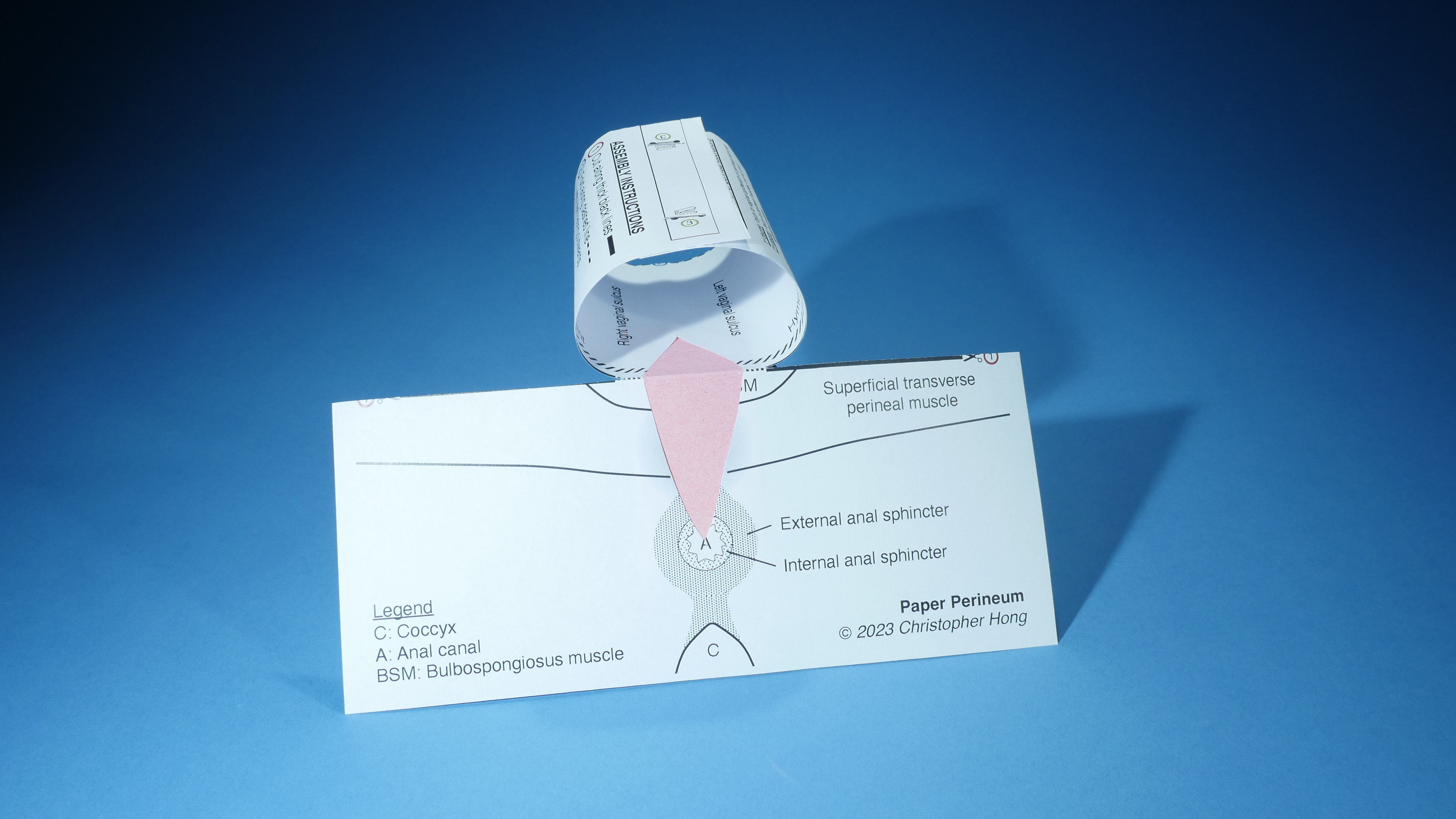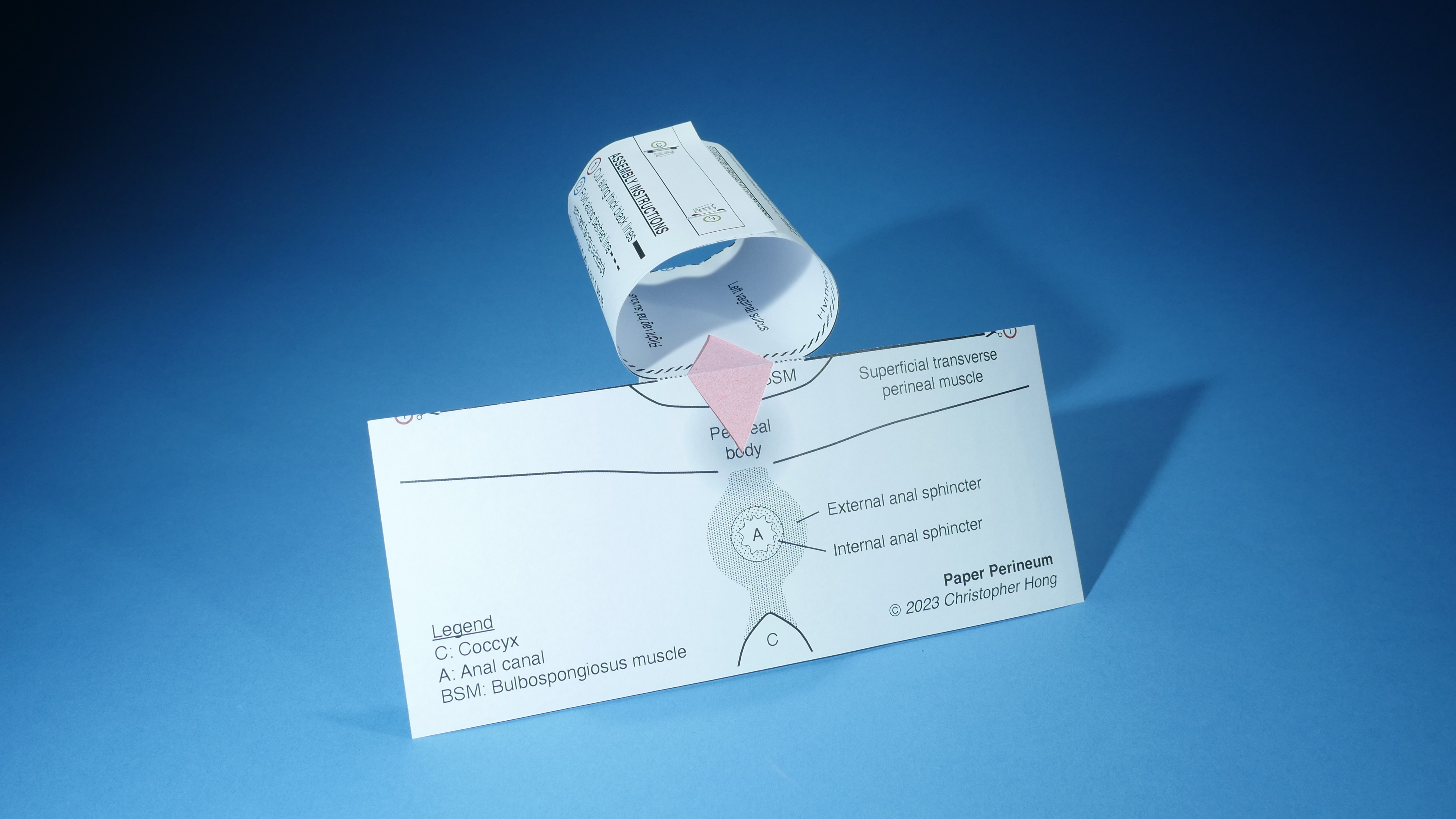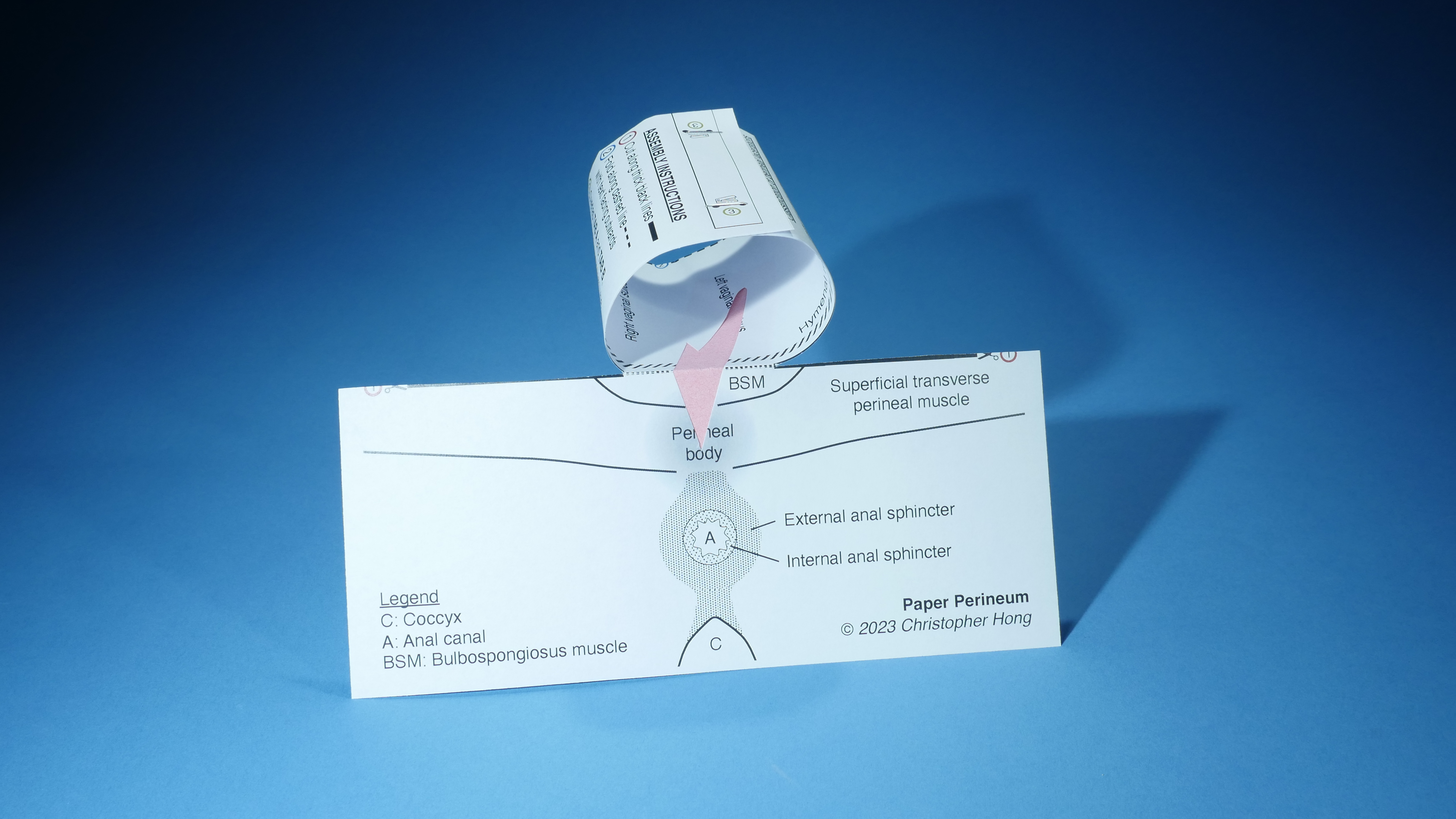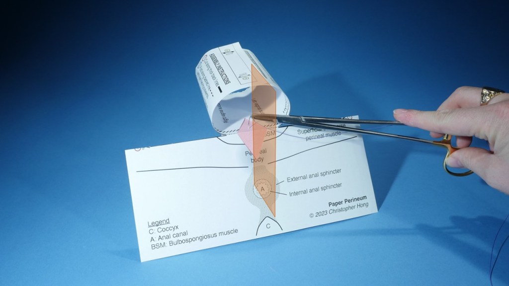 This creates a diamond shape representing a perineal laceration with vaginal and perineal components. The laceration can be extended deeper into the vagina and towards the anus to simulate additional types of lacerations: