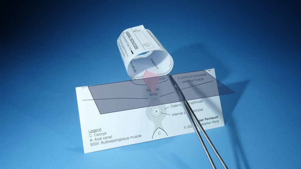 The model can also simulate episiotomies and help learners appreciate how medial episiotomies are more likely to result in anal sphincter injuries: