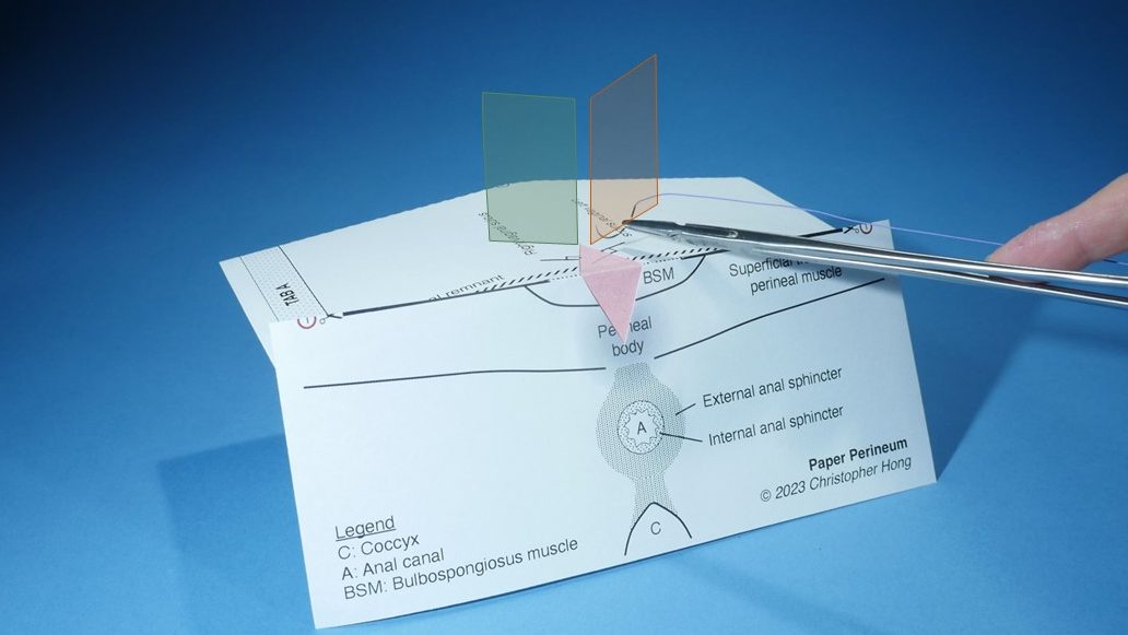 Excise portions of the model to simulate obstetric lacerations and use these models to simulate the three dimensional planes of laceration repairs.